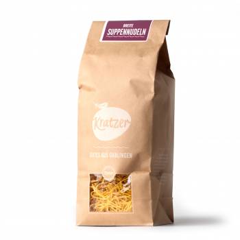 Unsere breiten Bandnudeln eignen sich besonders gut als Beilage zu Fleisch oder als Schinkennudeln. Auch für eine Vielzahl verschiedenster Nudelgerichte sind die breiten Bandnudeln ein Genuss.